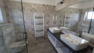 A nappali hangulatát exkluzív fatüzelésű kandalló biztosítja. Az összkomfortos kialakításnak köszönhetően minden szükséges kényelmet megkap, míg a hőszivattyús fűtés és a fancoil fűtés biztosítja az optimális hőmérsékletet az év minden szakában. A saját split klíma pedig a nyári hónapokban segít a kellemes hőmérséklet fenntartásában.